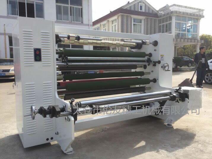 用途 適用于BOPP封箱膠粘帶/玻璃紙膠帶的分條 特點(diǎn) 1. 采用四軸全自動(dòng)交換卷取,連續(xù)收卷,提高工作效率。 2. 變頻無級調(diào)速,配置三段計(jì)數(shù)器,高速運(yùn)行時(shí)能自動(dòng)減速停車。 3. 放卷張力采用氣動(dòng)剎車控制,收卷張力采用雙重控制,配有離合器及收卷軸獨(dú)立滑動(dòng)裝置,可自由調(diào)整張力大小。 4. 配置弧形舒展輥,能有效舒展基材。 5.(選配)自動(dòng)貼標(biāo)功能、分條文具膠帶功能。